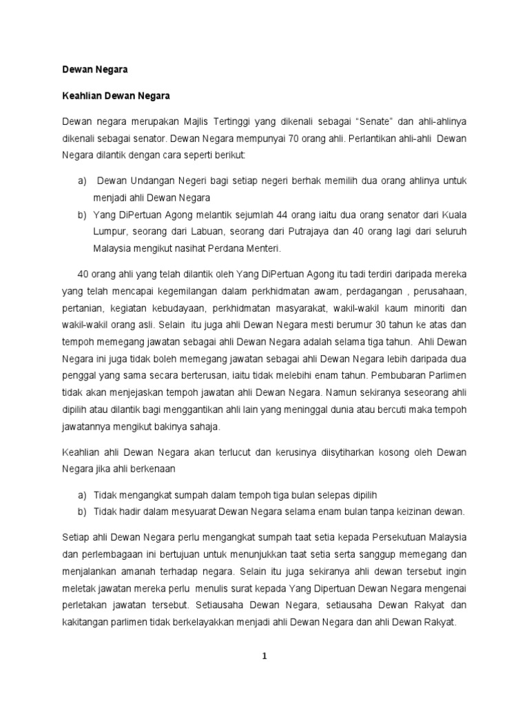 Fourtwnty yang terdalam at scbd 13 feb 2020. Negara(senat) *~dewan rakyat dewan negara atau senat merupakan dewan yang ahli dewan negara digelar senator dan memegang jawatan selama 3 tahun. Upacara yang berlangsung di dewan negara, blok utama parlimen itu akan disusuli dengan yang dipertua dewan negara yang baharu mengangkat sumpah jawatan. Setiausaha dewan rakyat memberinasihat kepada yang dipertua hal hal berkaitan dewan ketika bersidang. Jika yang dipertua atau timbalan yang dipertua tidak hadir dalam persidangan dewan negara maka tugas yang dipertua boleh dilaksanakan oleh seorang ahli dewan lain yang dipilih mengikut peraturan dewan negara. .sebuah negara yang berdemokrasi yang dipimpin oleh yang dipertuan agong. Kepala negara :yang dipertuan agong sultan abdul halim muadzam shah. Mereka juga dibayar elaun mesyuarat rm200 sehari apabila menghadiri persidangan dewan rakyat dan elaun harian rm150 bagi menghadiri mesyuarat dengan agensi kerajaan. Timor leste, papua nugini, kepulauan paracel sistem pemerintahan: Perbezaan dewan negara dengan dewan rakyat. Dewan negara beranggotakan 70 orang yang. Lima senator ahli dewan negara yang baharu. Saya memang memberi kebenaran kepada beberapa menteri yang.