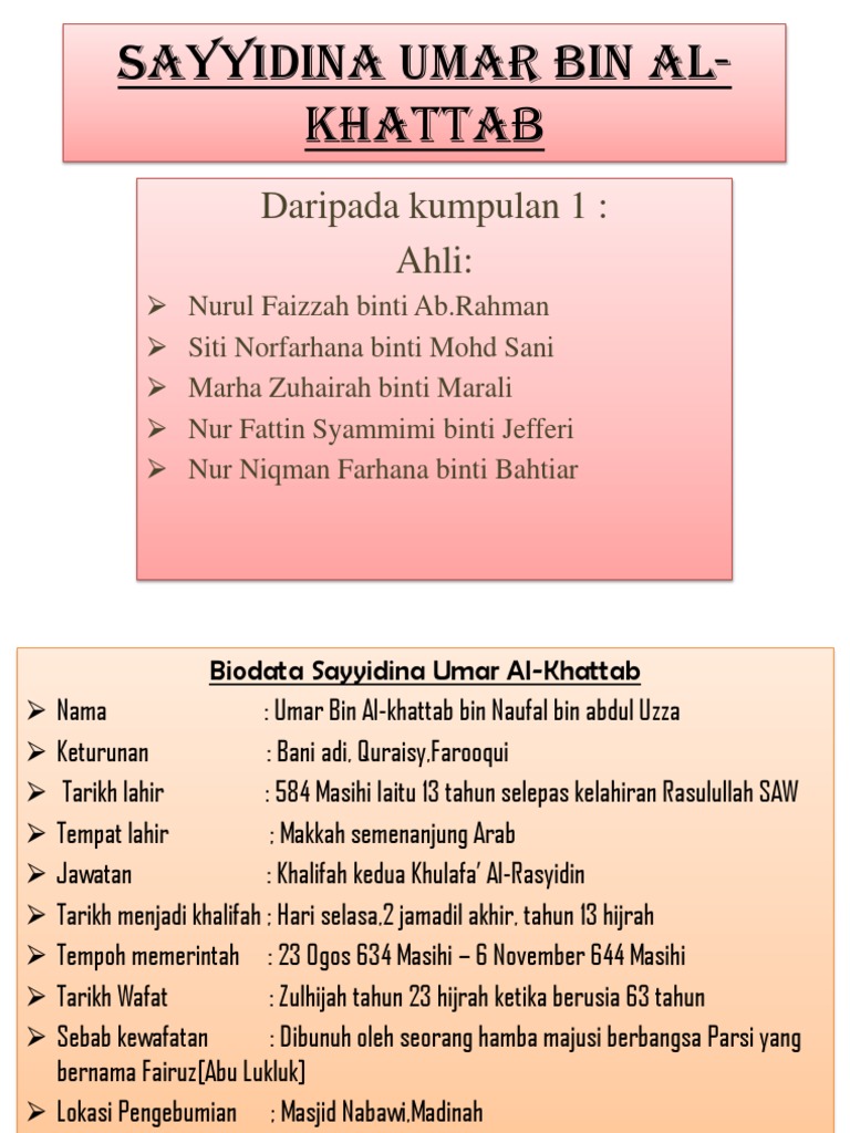 Riwayat Hidup Khalifah Umar Al Khattab from imgv2-1-f.scribdassets.com Peperangan yarmouk adalah pertempuran yang berlaku antara tentera islam dan tentera rom byzantine di jordan. Yang menyaksikan peristiwa tersebut, meriwayatkan: The al farooq omar bin al khattab mosque is a mosque located in dubai, united arab emirates. Adalah salah seorang sahabat yang sangat dicintai oleh baginda rasulullah saw. Juga melakukan beberapa pembaharuan dalam pentadbiran kerajaan islam. 584 masihi iaitu 13 tahun selepas kelahiran rasulullah. Hitunglah diri kamu sebelum kamu dihitung, timbanglah amalanmu sendiri sebelum ia ditimbangkan untukmu, dan bersedialah untuk hari pembentangan amal yang besar, sesungguhnya hisab pada hari kiamat menjadi ringan bagi sesiapa yang melakukan muhasabah diri di dunia ini.. 3 alasan ini yang membuat saidina umar bin khattab ditakuti setan selamat datang di channel vnclip almunai, mari kita.